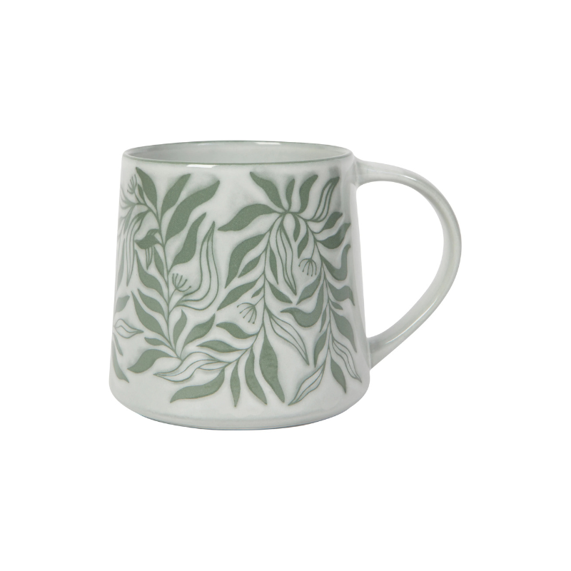 A new, in-house designed botanical pattern winds its way across the glossy surface of these generously-sized stoneware mugs. With nature-derived neutrals and a large, comfortable handle, these are the mugs to reach for throughout the day.